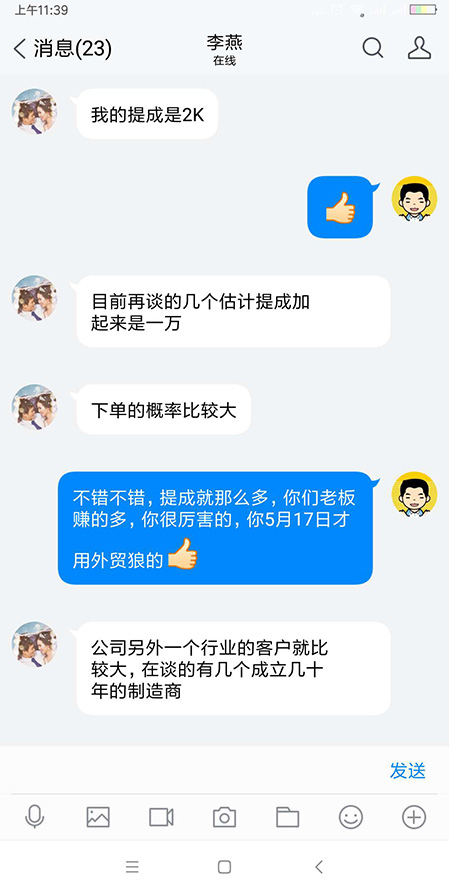 这个截图是,有一个客户知道外贸狼可以精准定位采购身份分析,不相信,于是拿出来了一个客户做测试,最后外贸狼测试出来的数据比他辛辛苦苦参展来的数据都要丰富,因为不仅找到了老板,还找到了采购,副总,财务总监等!